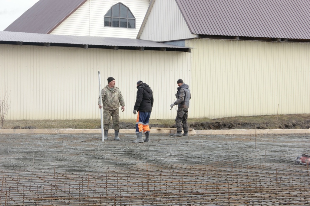 Сейчас проходит один из главных этапов – залитие армированной монолитной фундаментной плиты.