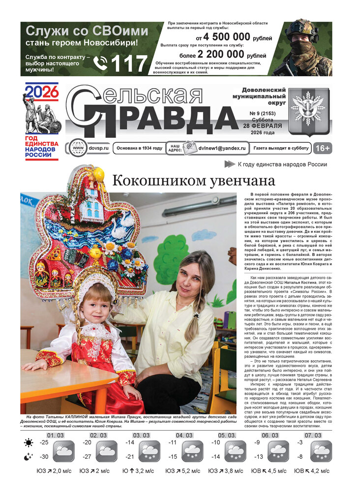 Все новости сайта газеты «Сельская правда» Доволенского района.
