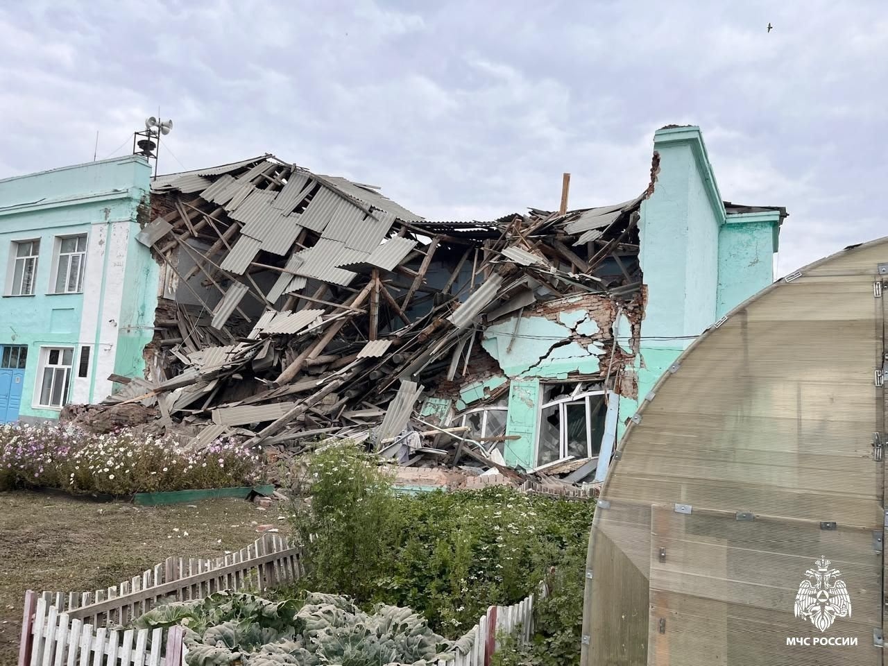 По предварительной информации, пострадавших нет. В момент обрушения части здания людей не было.