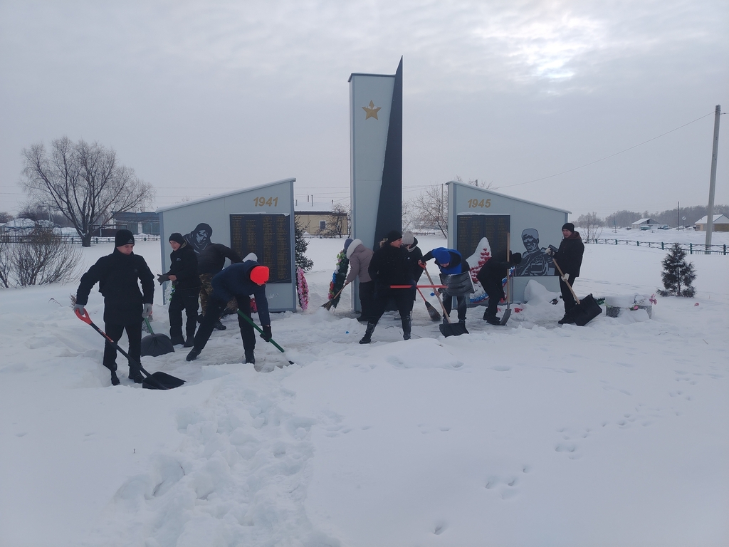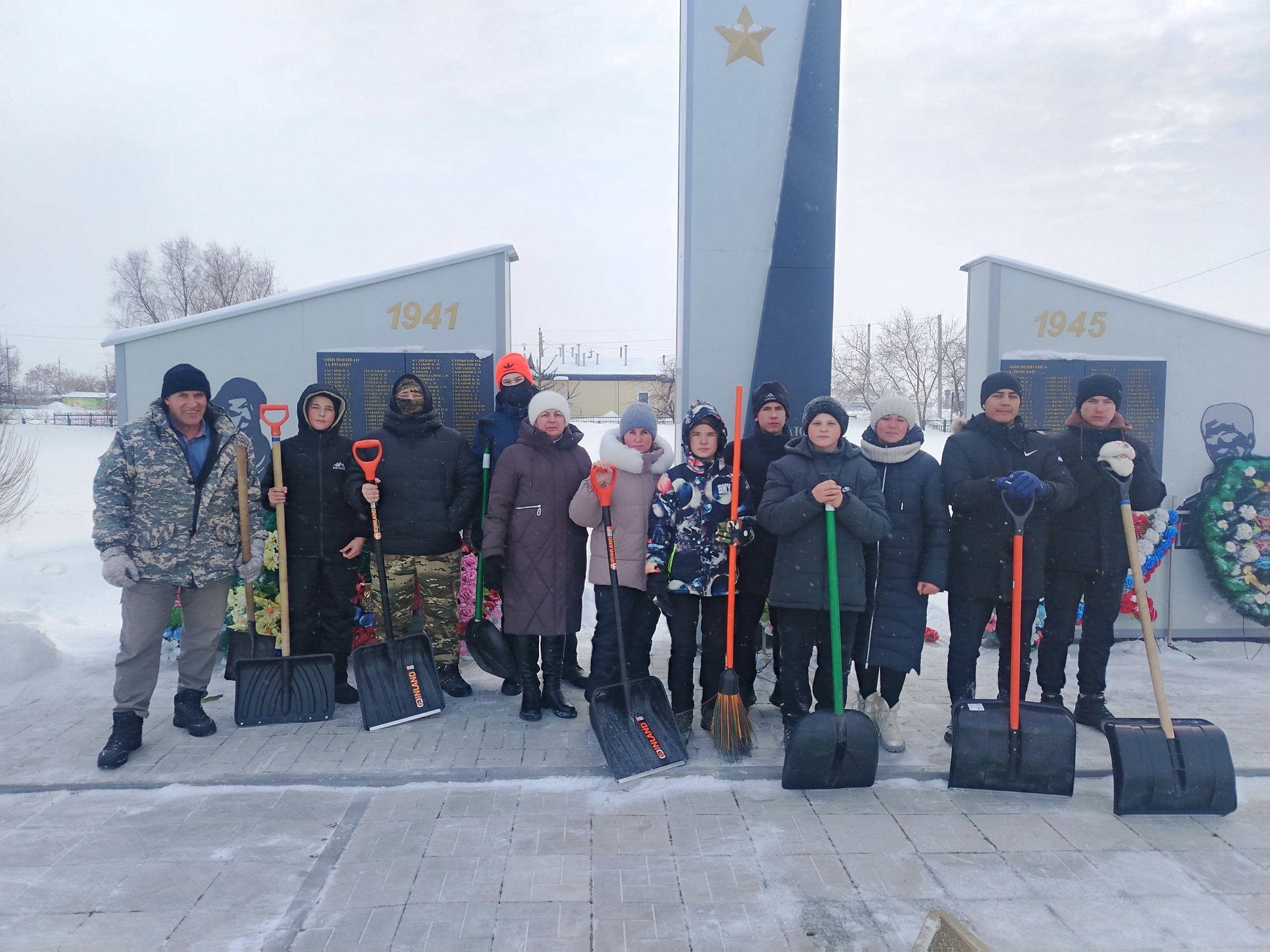 21 января сотрудники СДК вместе со школьниками убрали снег на площадке, расчистили дорожку к памятнику и мемориальную плиту. Для участников акции поддержание в порядке монументов, посвящённых памяти участникам ВОВ – это дань памяти перед поколением, прошедшим войну, их мужеством и стойкостью.