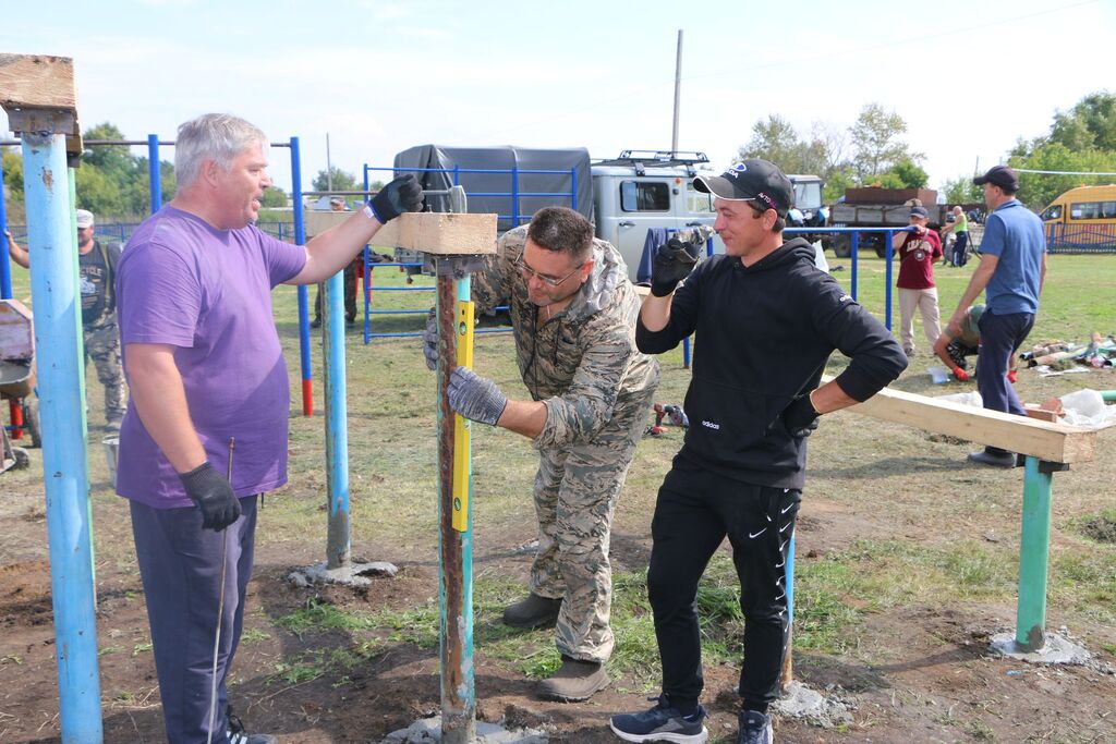 Территория будущего стадиона заметно преобразилась буквально за половину рабочего дня: скошена трава и убраны мешающие деревья, вдоль забора сделали пространство более открытым. Сильные мужчины из разных районных организаций взялись за установку полосы препятствий. Они вдохнули новую жизнь в старый лабиринт, продемонстрировав настоящую мужскую силу и сноровку: выкопали его, выправили изогнутые железные трубы и надёжно закопали, готовя к будущим спортивным баталиям. Первый день выдался тяжёлым и долгим для участников акции. Работы ещё кипели до самого вечера.