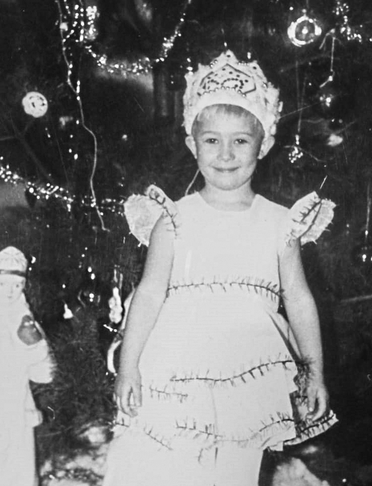 Наталье Бандюковой из Ильинки на этом фото 4-5 лет и она в наряде Снежинки на утреннике в детском саду.