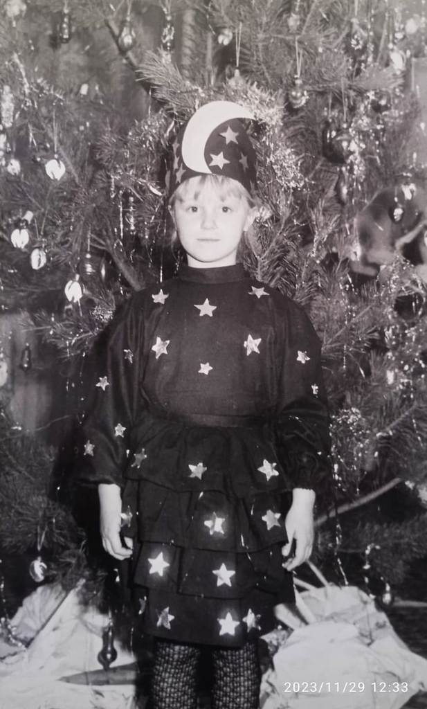 Новый год 1990 года. Анастасии Мустафиной костюм «Ночки» шила её мама Светлана