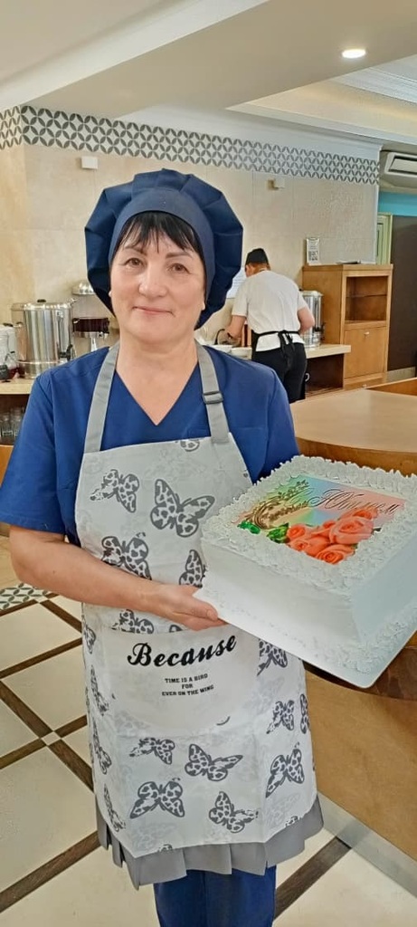 Жаль, что мы не смогли попробовать сладости Светланы Васильевны, но нас пообещали обязательно угостить её тортиком. По словам коллег по кухне, заказов на десерты у Светланы Васильевны очень много.