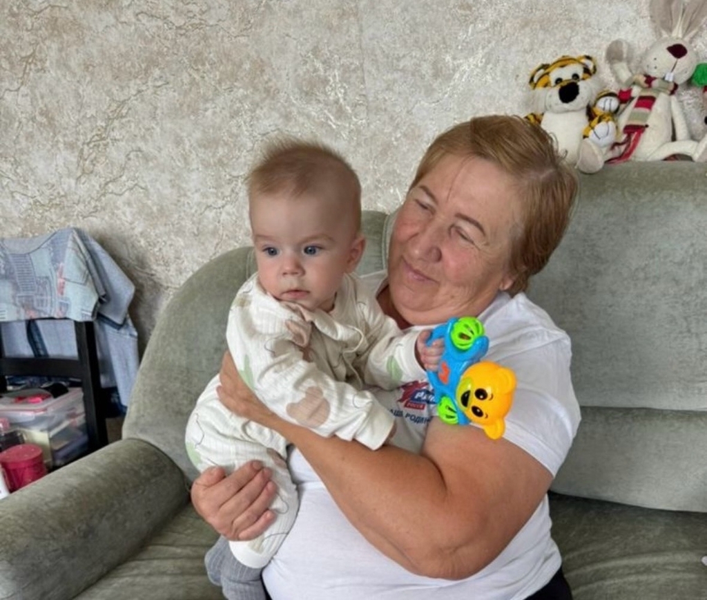Жительница райцентра Татьяна Шкурат и её маленький обожаемый внучок Мишенька. Лето 2025 года.