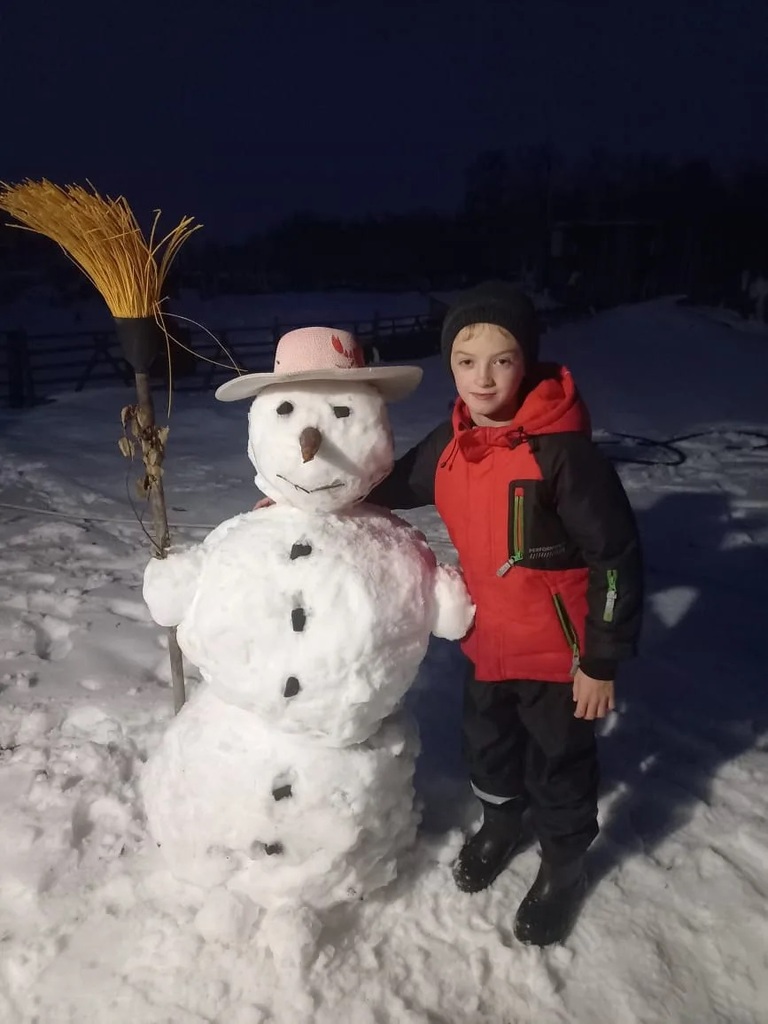 Наверное, каждый ребёнок слепил за зиму хотя бы одного снеговика. Вот и Владимир Батурин из Волчанки смастерил себе весёлого «товарища».