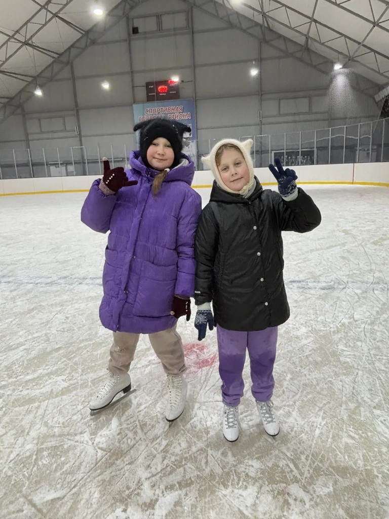 Две Варвары Качанова (слева) и Ефремова морозное время проводят на крытом хоккейном модуле. По улыбке и яркому румянцу на щеках заметно, что такой досуг им нравится.