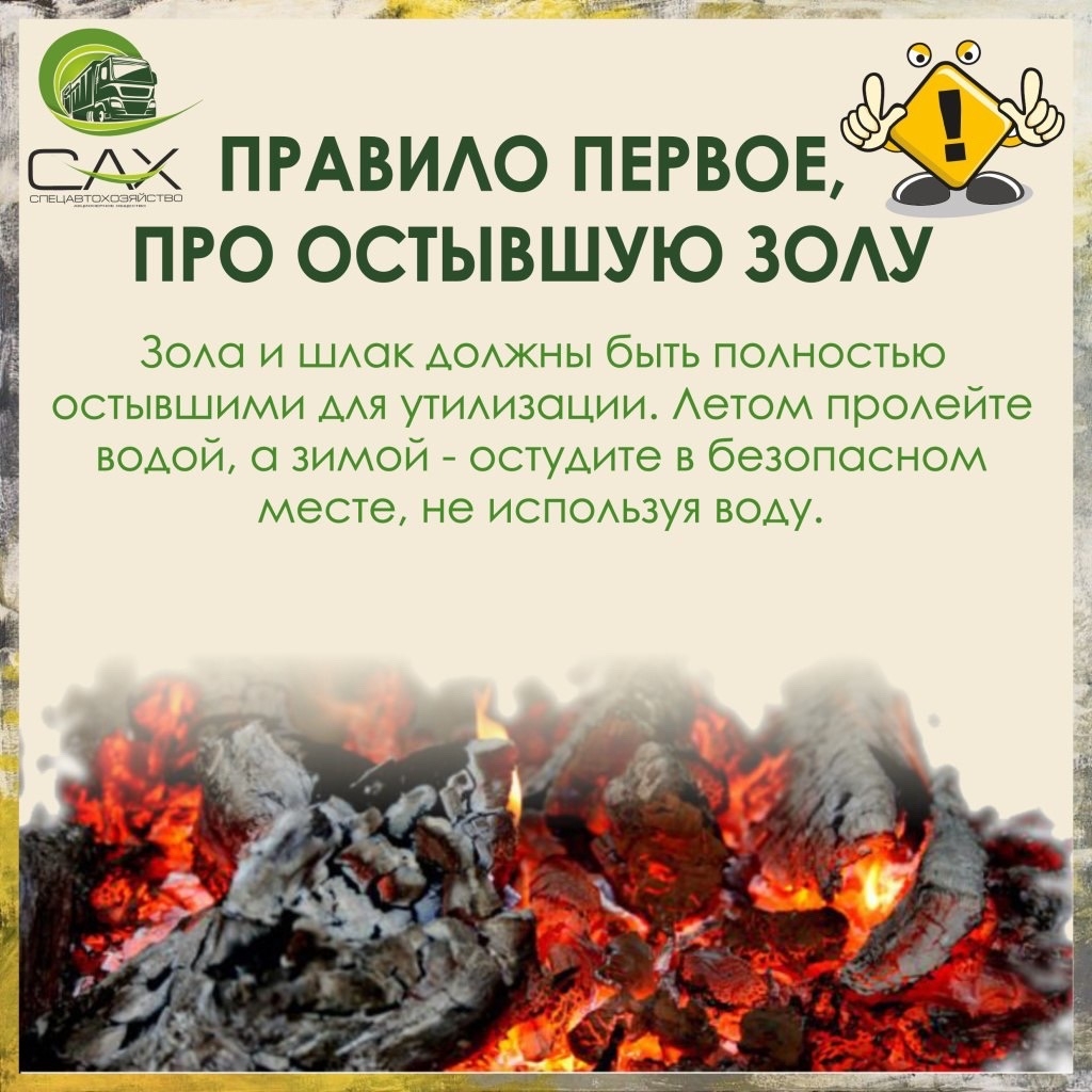 Неостывшая зола может стать причиной пожара в мусоровозе, в местах накопления и размещения отходов. Чтобы избежать пожароопасных ситуаций, соблюдайте простые правила: