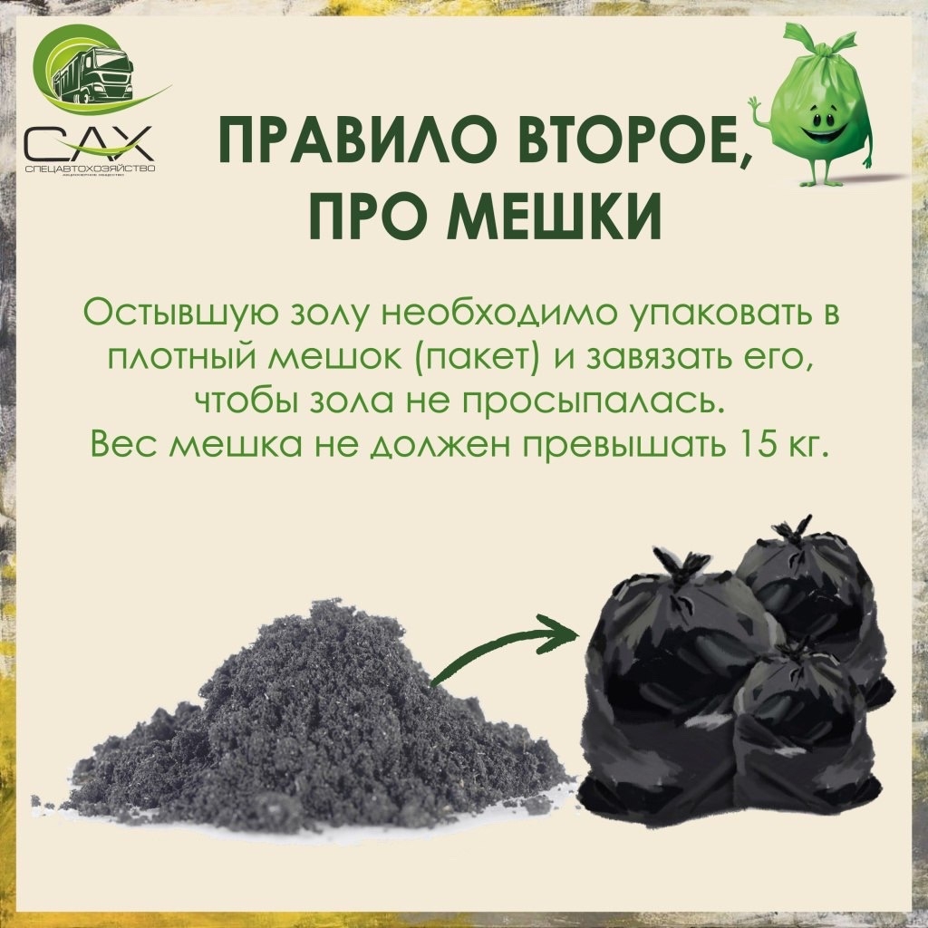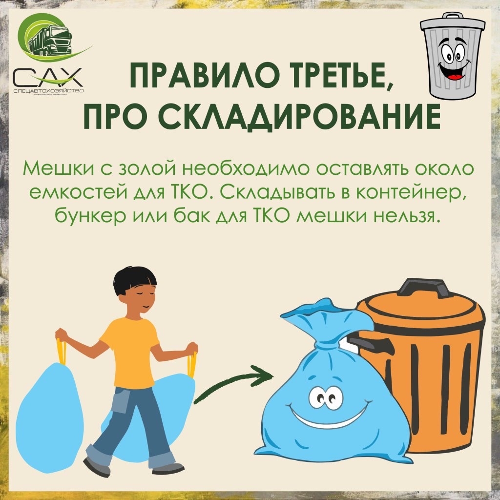- Выставляйте мешки с золой рядом с ёмкостями для ТКО.