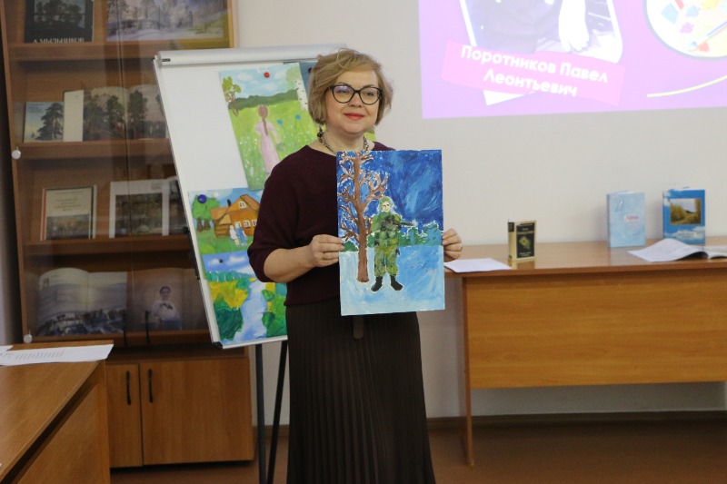 Гости просмотрели документальный фильм «Цвет победы», посвященный сибирским художникам – участникам Великой Отечественной войны. В перерывах с просмотром фильма ведущие читали стихи местных авторов: Валентины Доценко, Евгении Гутенёвой, Раисы Филонич, Татьяны Калюжной и Александра Фёдорова. ИХ стихи стали источником вдохновения для юных воспитанников Доволенской школы искусств. Они воплотили поэтические образы в яркие картины, став активными участниками краеведческого проекта, организованного совместно с библиотекой. Участники клуба «Огонёк» с азартом угадывали, к какому стихотворению относится та или иная иллюстрация. А в завершение вечера, сами взялись за кисти и краски. По двум стихотворениям местных поэтов, они создали коллективные картины, продемонстрировав своё видение и творческий подход.