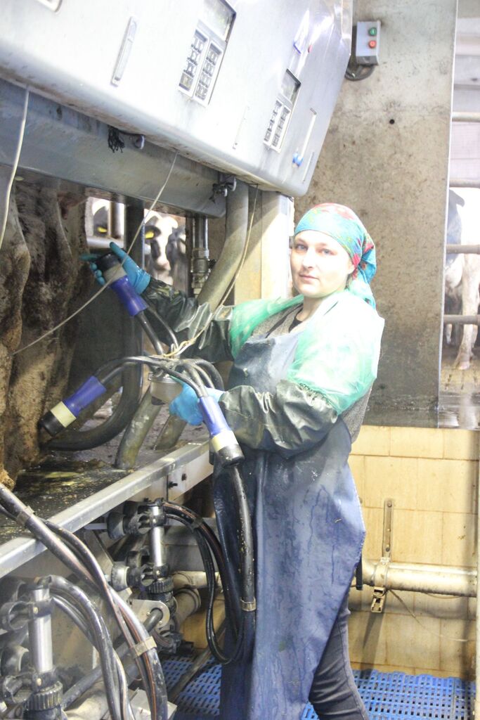 Первая остановка – доильный зал. Отвлечь тружениц нельзя, ведь процесс непрерывен, поэтому мы поговорили с ними, не прекращая дойку.