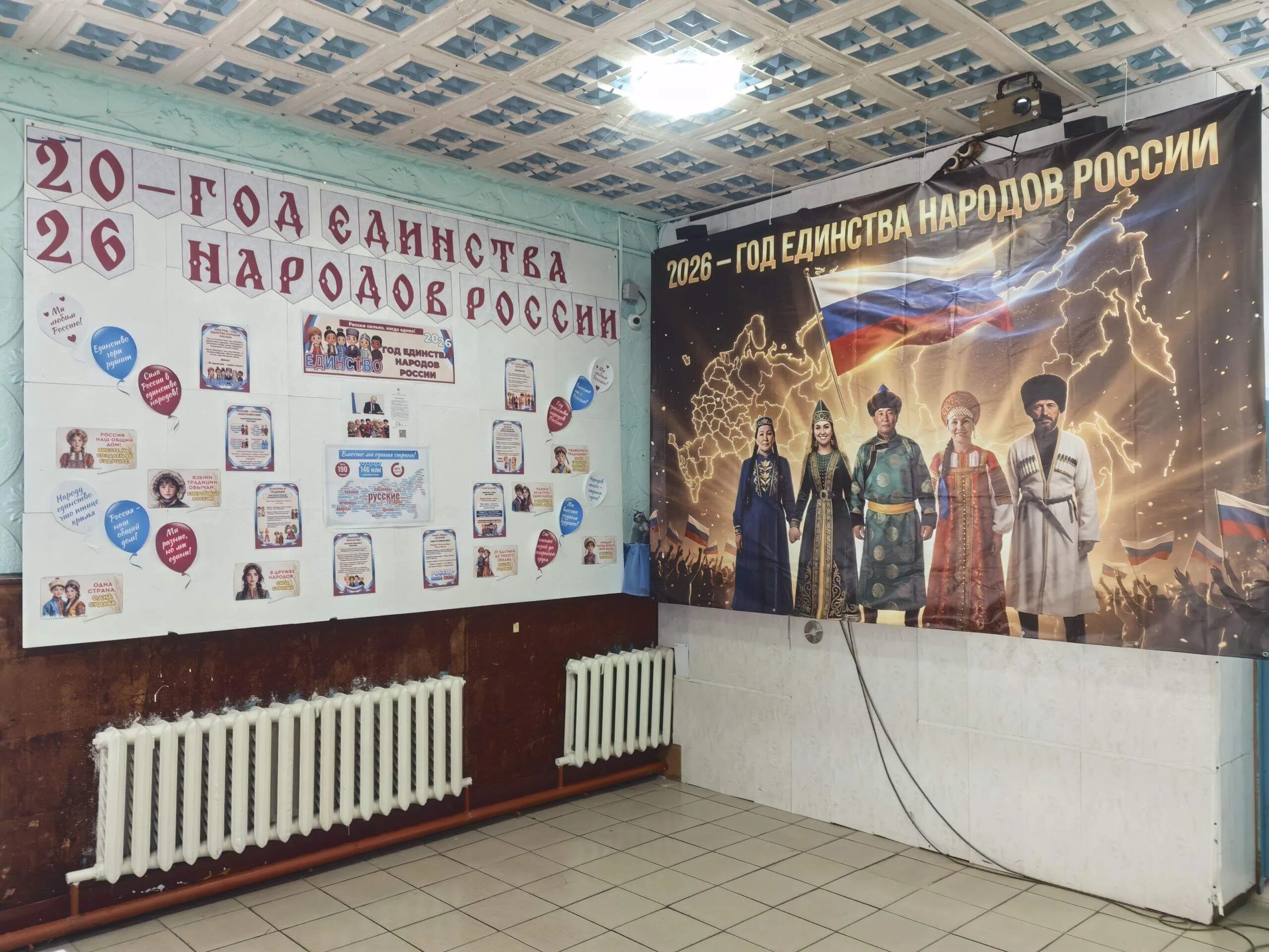 В здании клуба появился информационный стенд, рассказывающий о многообразии культур и традиций нашей страны. А яркий баннер на эту тему украсил стену. К инициативе присоединяются и другие организации, оформляя свои здания в духе единства.