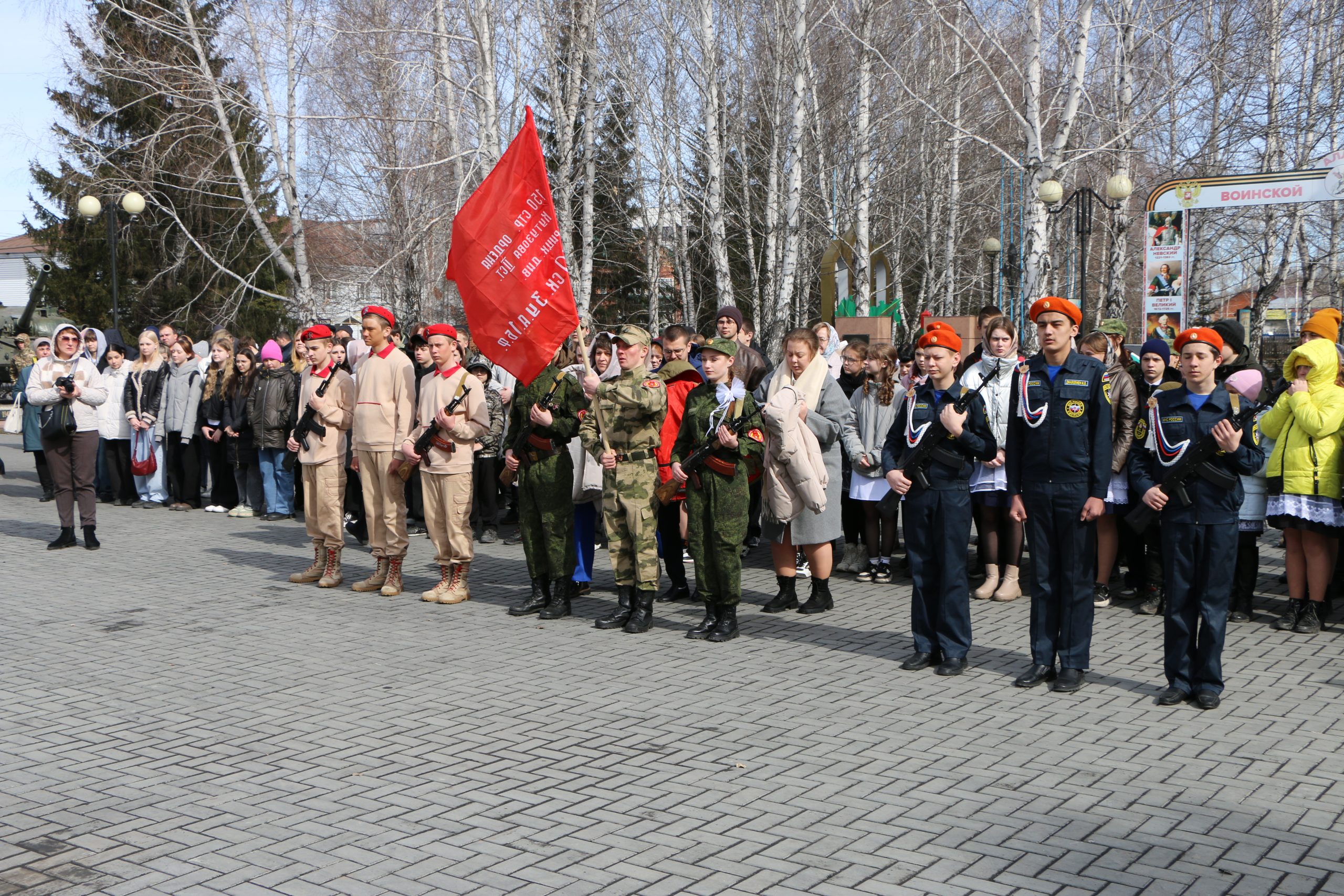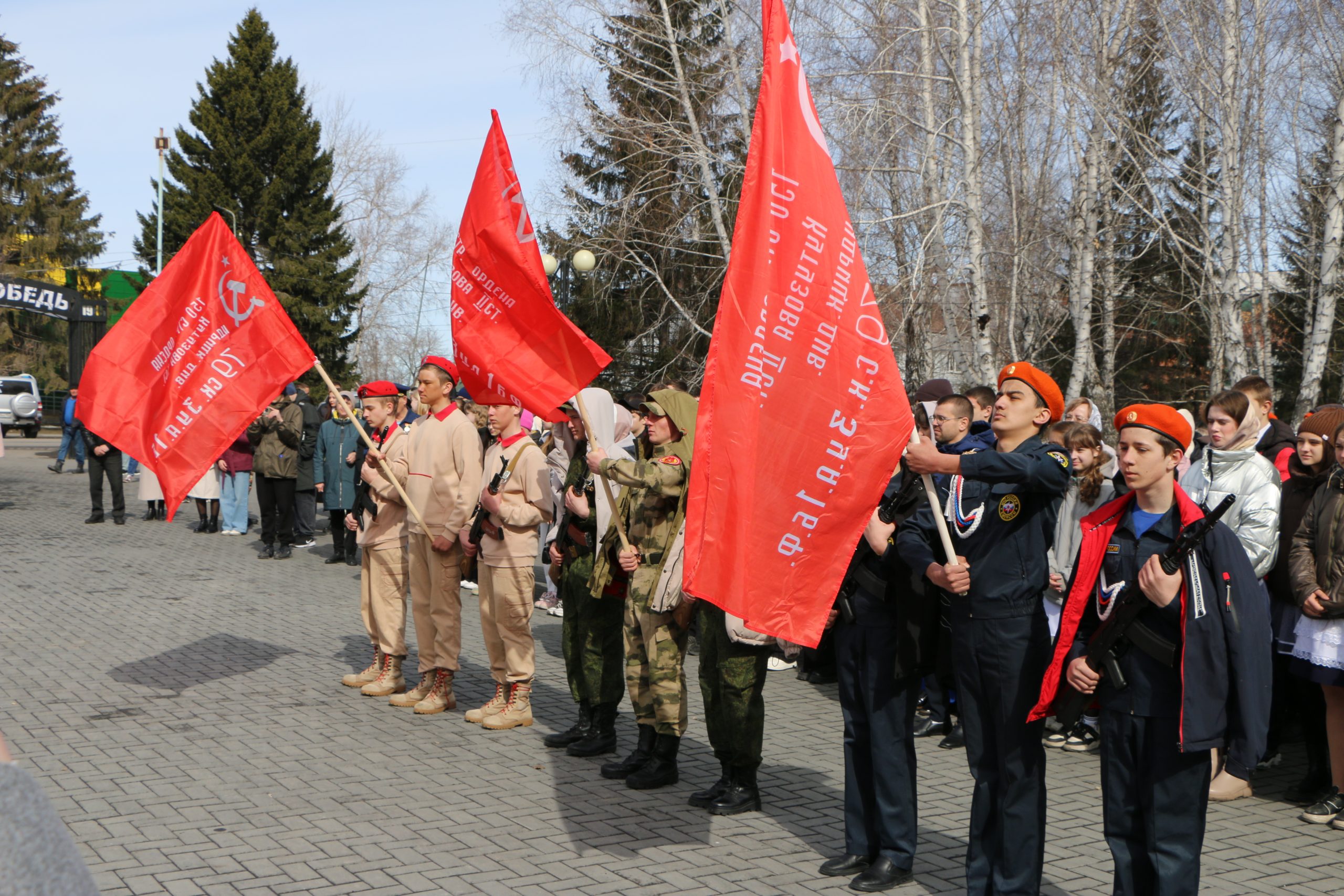 Первую копию знамени ветеран боевых действий в Афганистане Сергей Алексеев вручил военно-патриотическому клубу «Ермак» из Доволенской СОШ №2 им С. И. Лазарева. Вторую копию знамени Победы отряду МЧС «Юный спасатель» из Доволенской ООШ вручил ветеран пограничных войск и майор МВД Виктор Заковряшин. Третью из рук ветерана СВО Юрия Русакова получил юнармейский отряд «Сибиряки» из Ярковской СОШ.