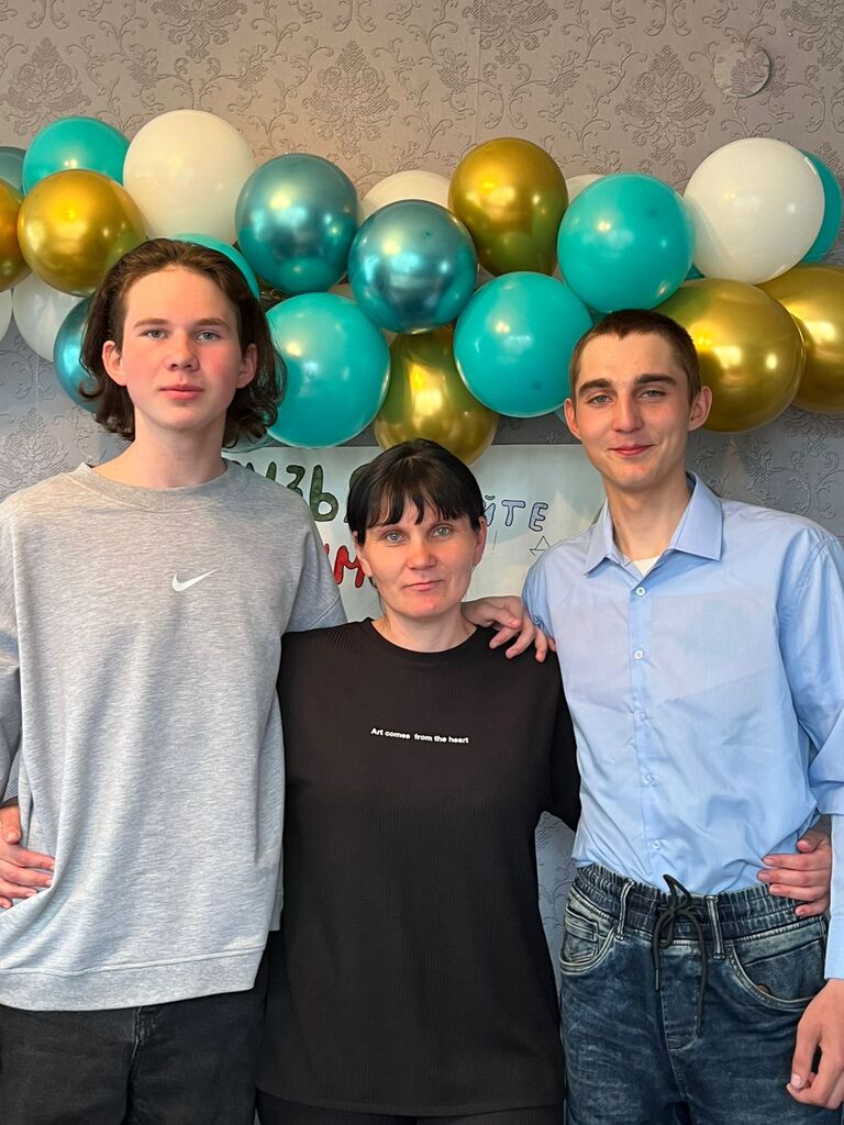 Олеся Шатилова из Индери со своими взрослыми сыновьями Артёмом (справа) и Станиславом (слева).