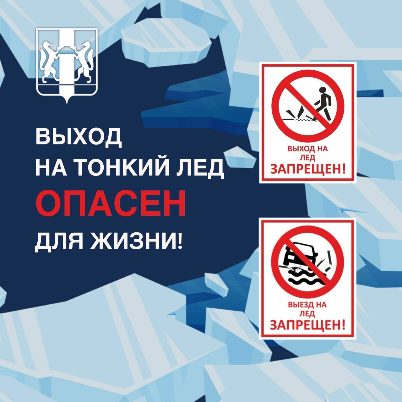 Уважаемые жители Новосибирской области! Будьте осторожны и не рискуйте! Выход на неокрепший лед может стать последним. Не пытайтесь проверить прочность льда или проехать по нему на транспорте. Предупредите детей об опасности игры и прогулок у водоемов. Берегите свои жизнь и здоровье!