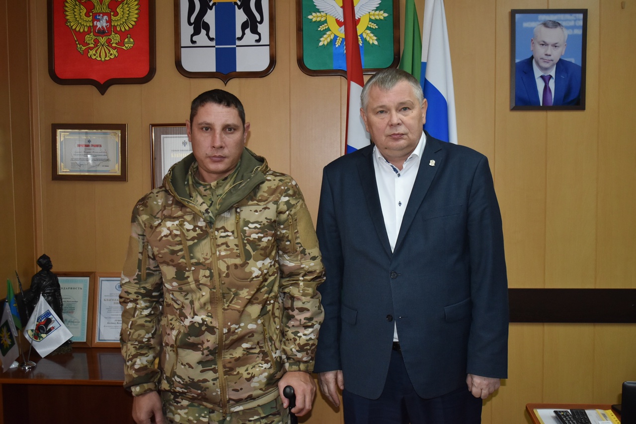 Глава Доволенского района Богдан Луцкий регулярно встречается с доволенцами-участниками специальной военной операции.