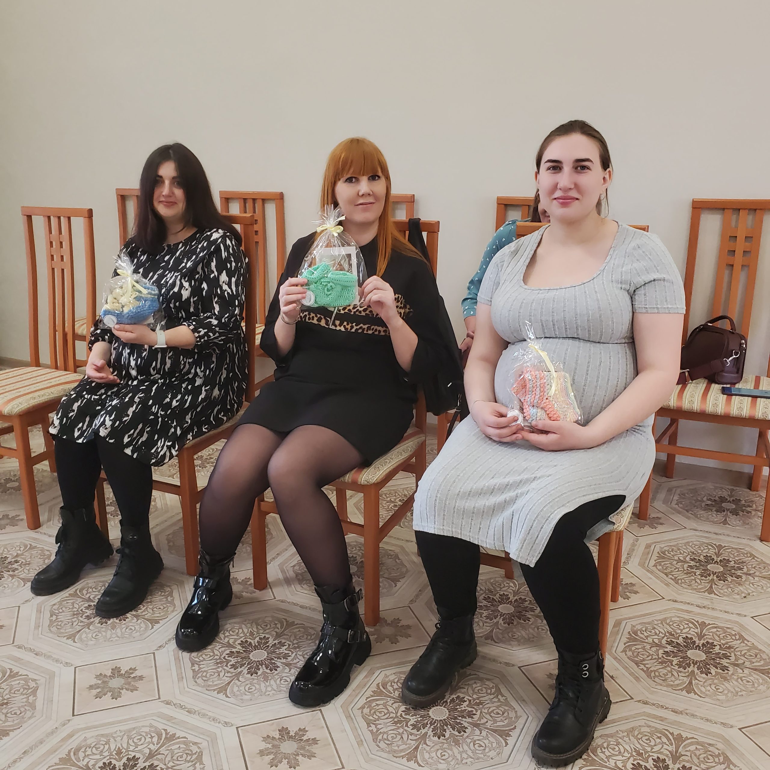 Председатель Союза женщин Доволенского муниципального округа Ольга Перепёлкина вручила беременным самые трогательные подарки от участников акции «Связано с любовью» посвящённой сегодняшнему празднику – пинетки для новорожденных. В рамках этой акции её участницы вяжут пинетки для будущих и уже родившихся малышей, чтобы выразить свою поддержку и заботу. В акции Союза женщин приняли участие женщины из Комарья, Согорного, Травного, Баклушей, Красной Гривы, Довольного – всего было связано 44 пары нежных ажурных пинеток для малышей. Этого количества хватит на проведение не одной, а нескольких акций.