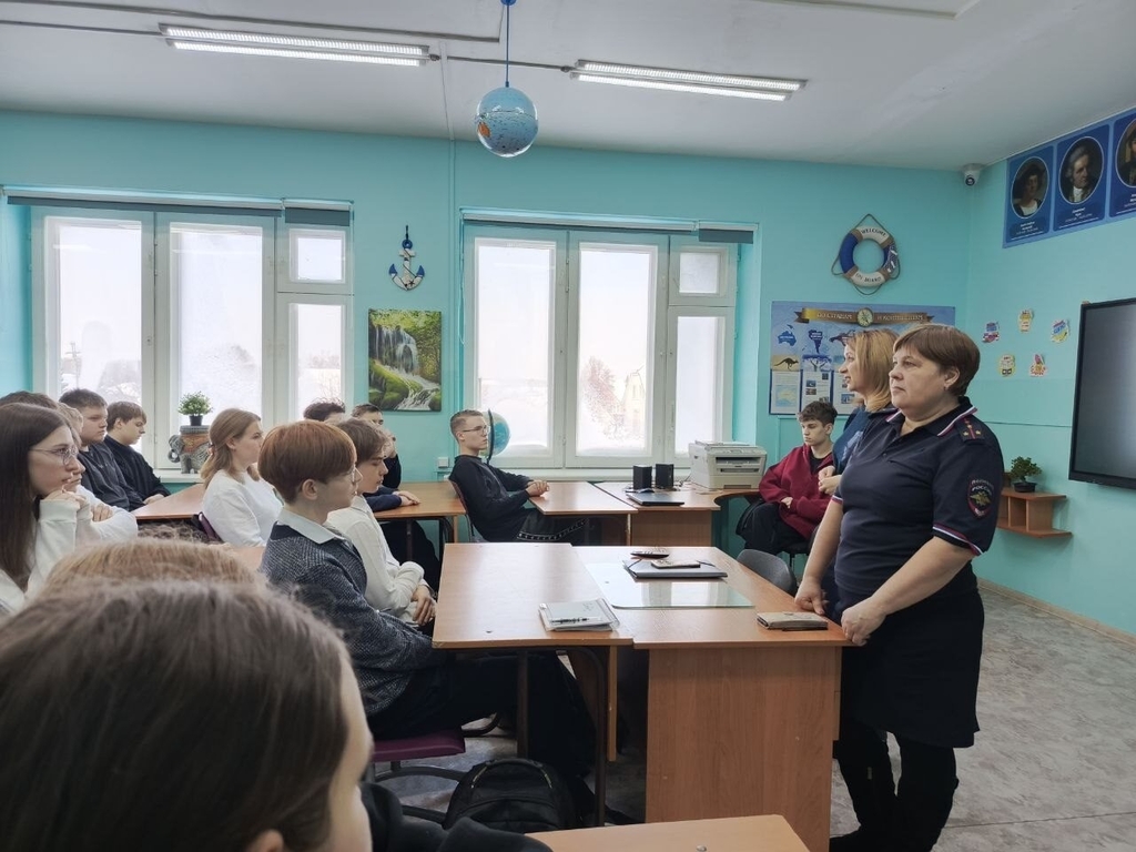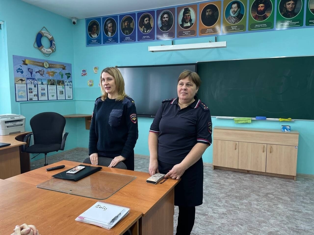Будущие выпускники Доволенской СОШ №1встретились с подполковником полиции Еленой Захаровой, заместителем начальника МО МВД Росси «Краснозерский».