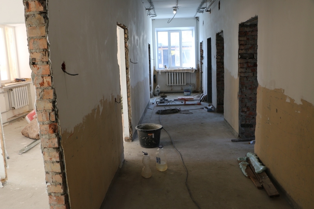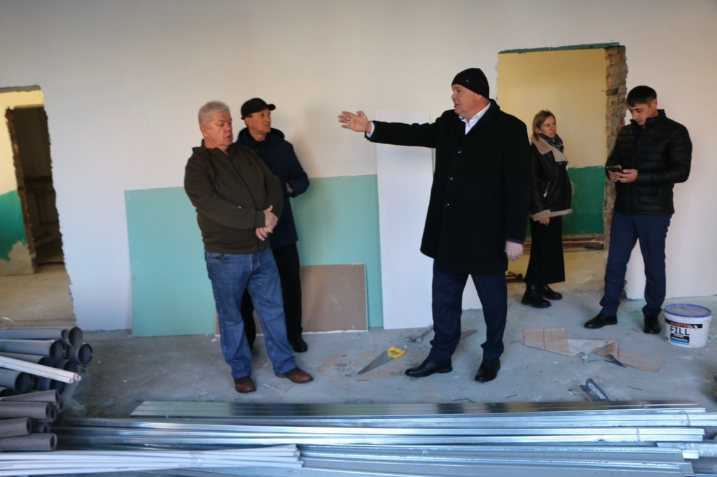 Александр Михайлович продолжил экскурсию, показав гостям, как преображается бывшее здание военкомата. Строительные работы здесь кипят, ведь в скором времени здесь появятся новые просторные залы для танцевальных и вокальных коллективов.