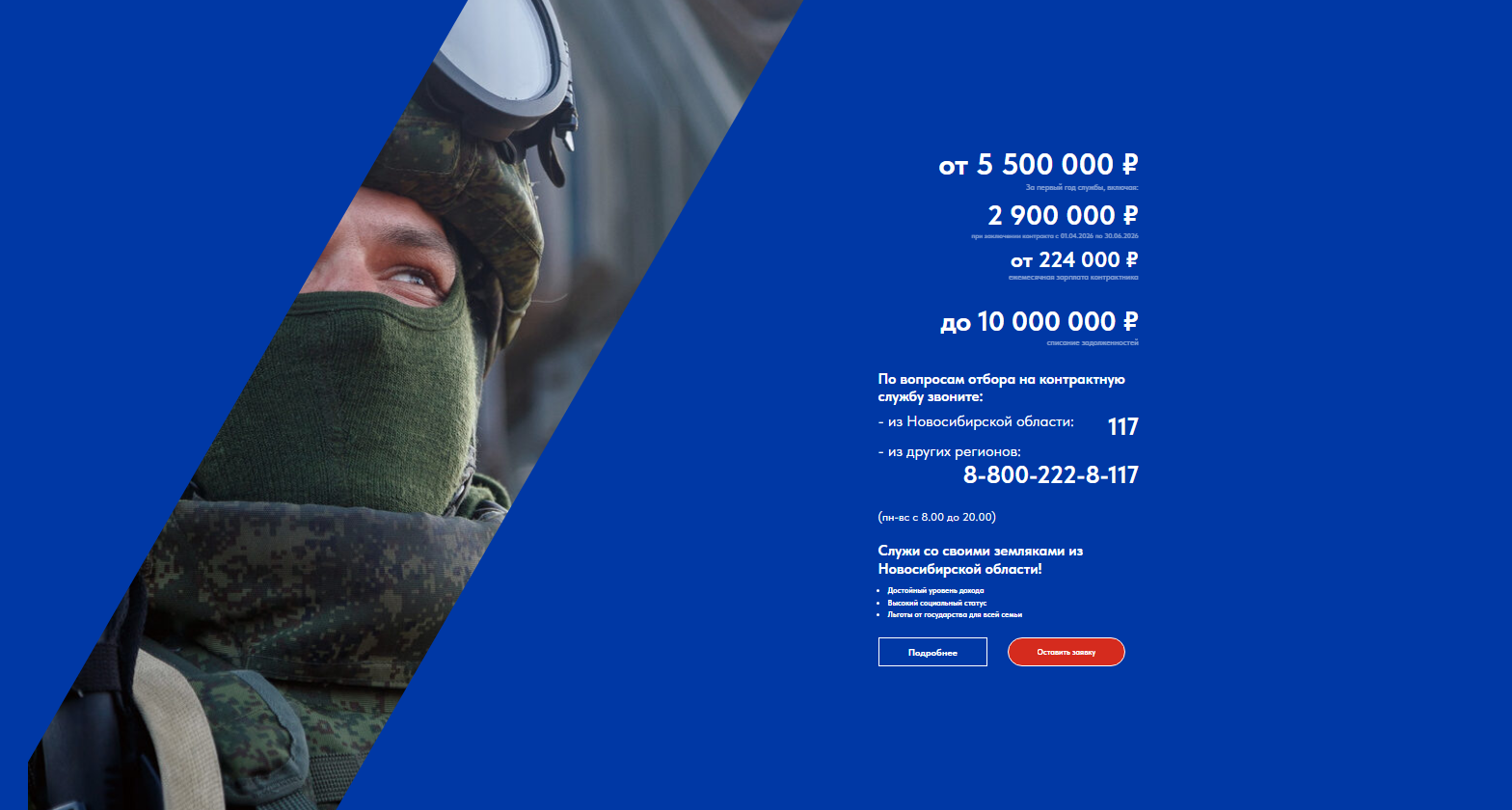 Подробнее о воинской службе по контракту можно узнать по бесплатному номеру «горячей линии» 117 и на сайте kontrakt.nso.ru