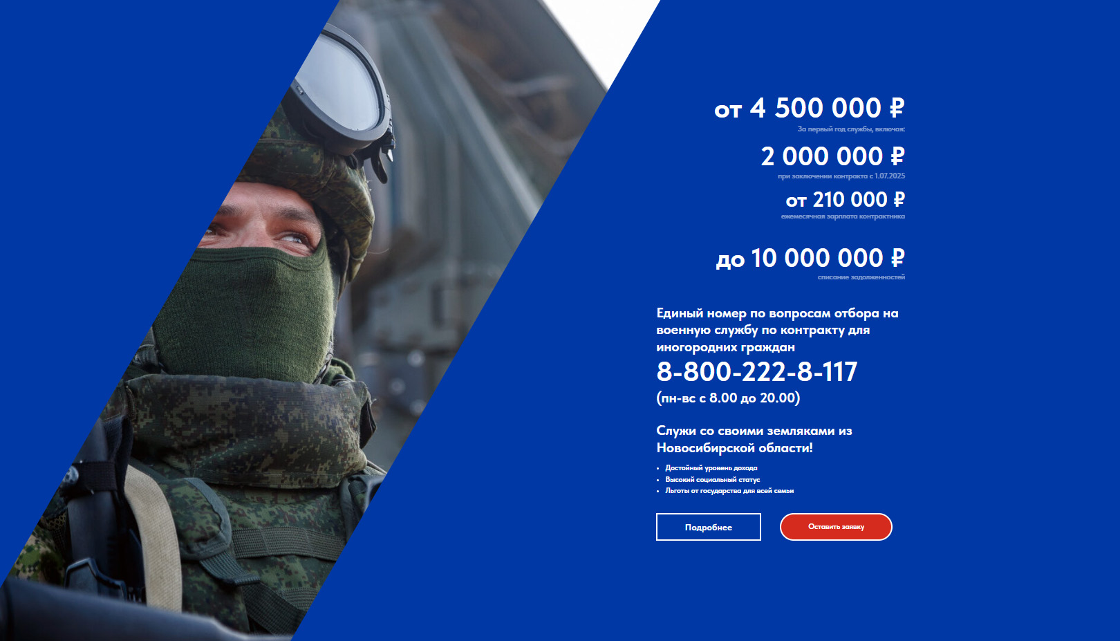Подробнее о военной службе по контракту можно узнать по бесплатному номеру «горячей линии» 117 и на сайте kontrakt.nso.ru