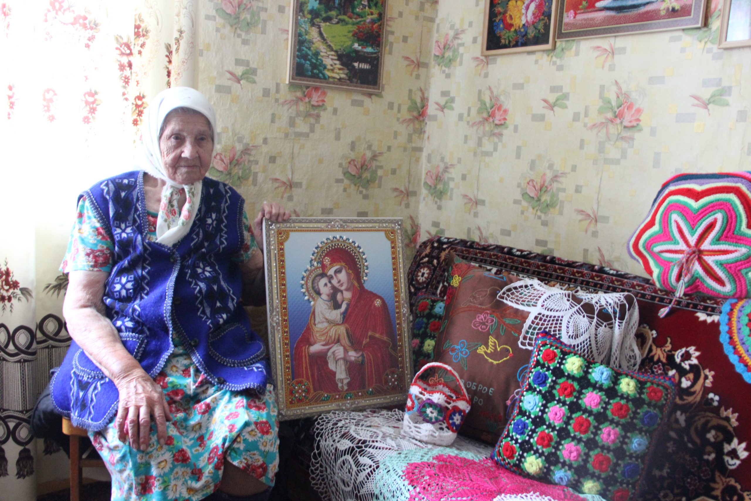 – Мы все помогали маме, – поправляя светлый платок на совсем белой от седины голове, продолжает она. – У нас был очень большой огород, много скотины, но несмотря на это, я своё увлечение не бросала. Собирала короткие ниточки, которые оставались после мамы, связывала между собой, сматывала в аккуратный клубочек и, когда набиралось нужное количество пряжи, принималась за дело.