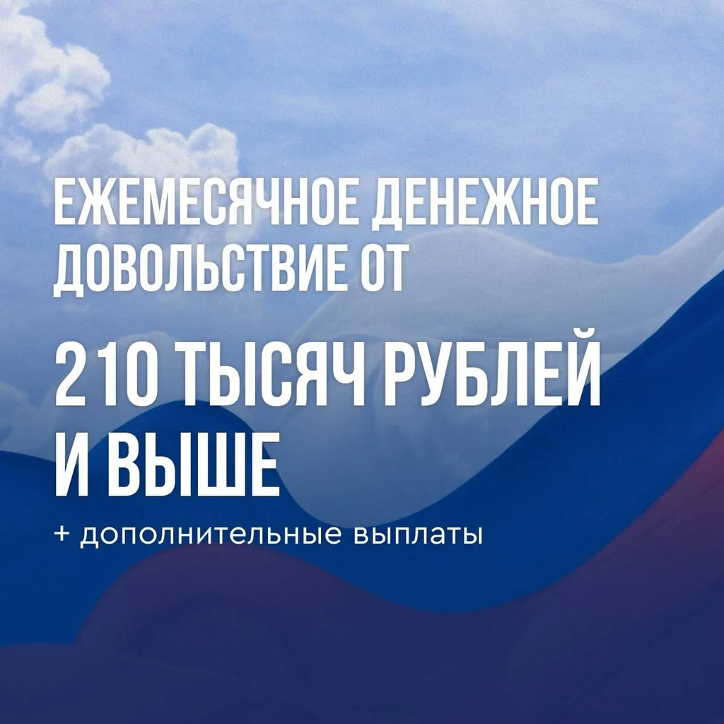 Единовременная выплата при подписании контракта составляет 2 миллиона рублей, ежемесячное денежное довольствие — от 210 тысяч рублей.