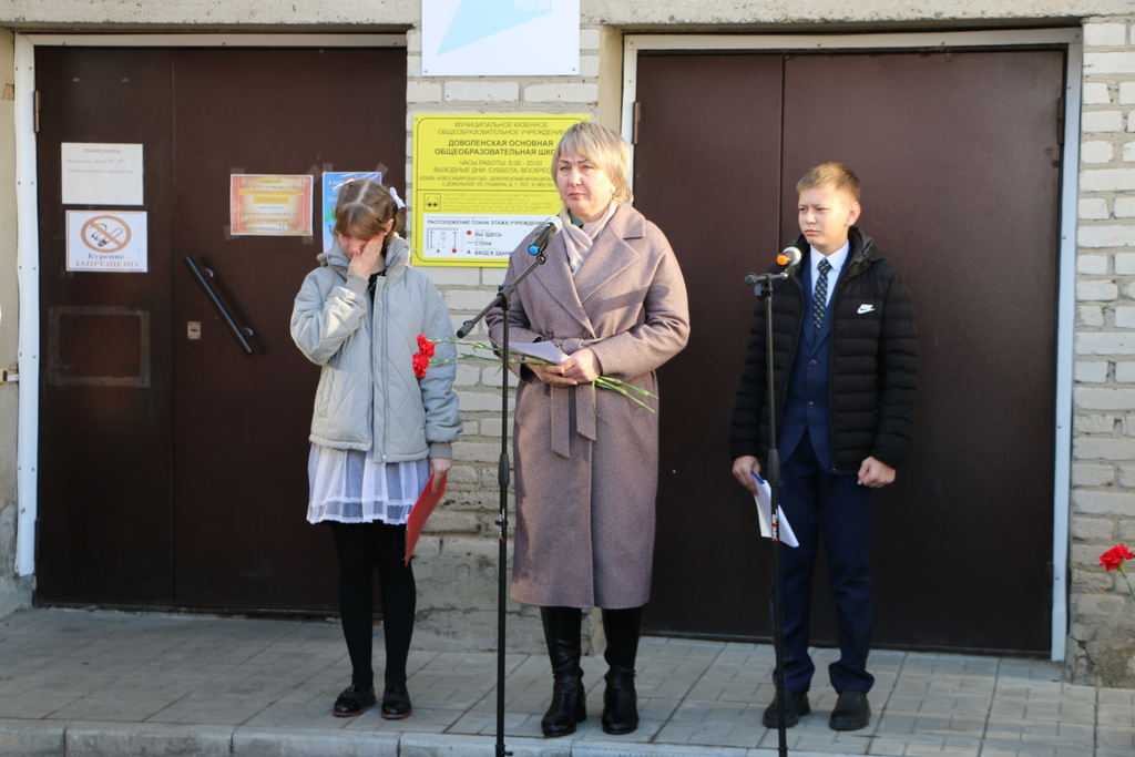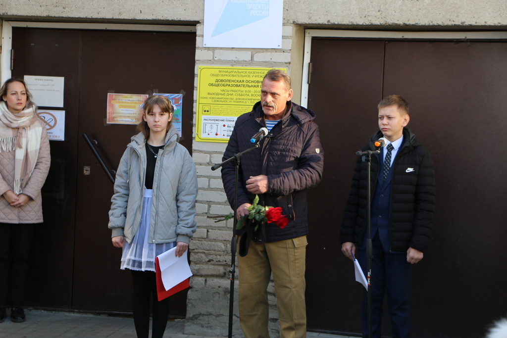 Сегодня в Доволенской основной школе состоялось торжественное открытие мемориальной доски, посвящённой выпускнику школы Андрею Гришину, погибшему в апреле этого года в зоне проведения спецоперации.