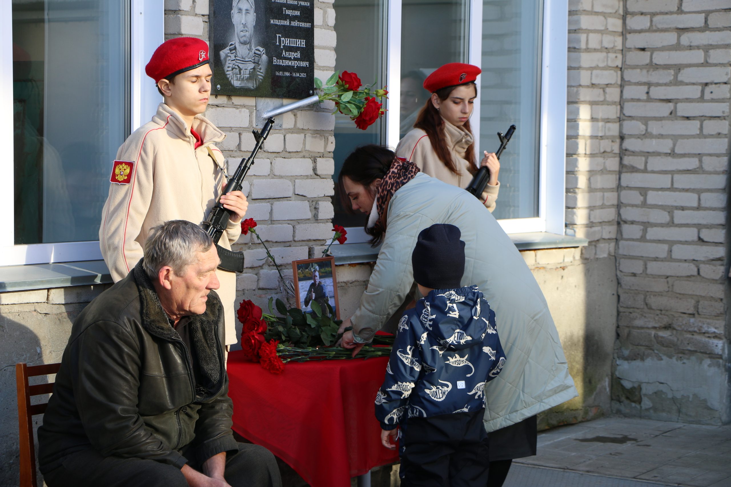 Теперь мемориальная доска на здании школы будет вечно хранить память о своём герое-выпускнике Андрее Гришине.