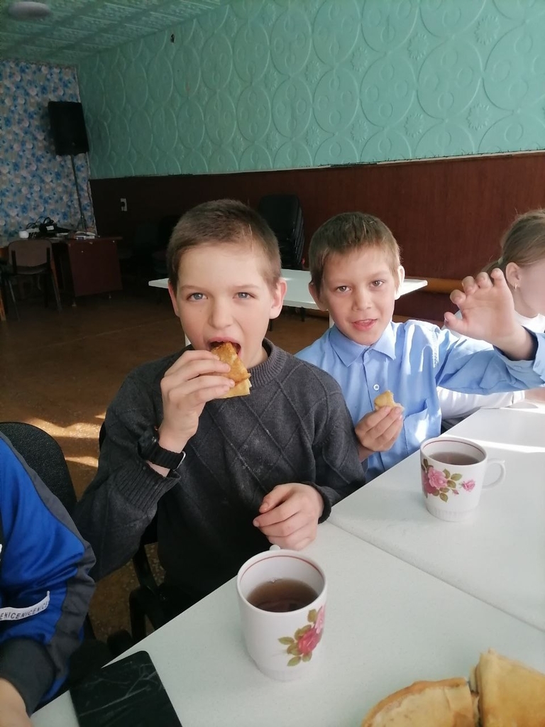 Попробовали и остались в восторге от блинчиков в исполнении своих юных землячек Максим Аникеев (слева) и Артём Зорин.