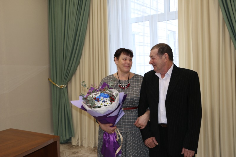 Сегодня в Отделе ЗАГС Краснозерского района (обособленное рабочее место в с. Довольное) чествовали Сергея Ивановича и Любовь Николаевну Шелудько, отмечающих 45 лет совместной жизни – их сапфировую свадьбу.