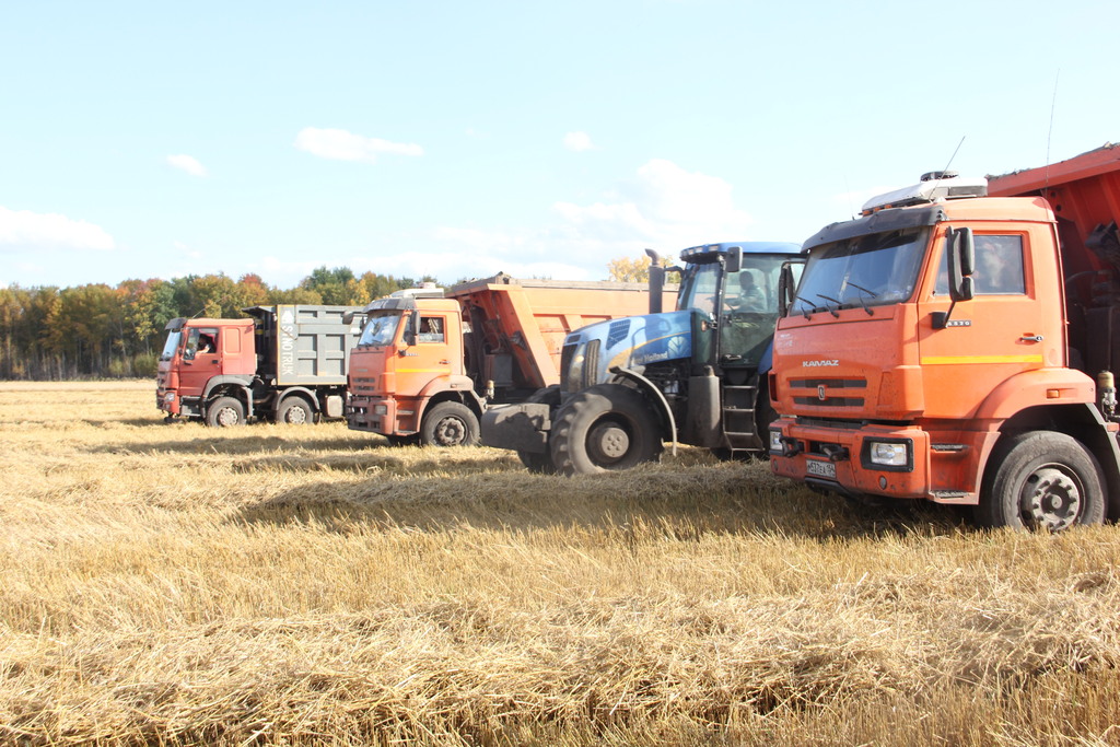 Неожиданно, стоявшие возле нас пять КамАЗов, как по команде, срываются с места. Оказывается, по рации комбайнёры предупредили водителей, что их бункеры практически наполнены, скоро будет выгрузка. В КамАЗ с прицепом вмещается около 4 бункеров, наполнив кузов, машина отправляется в Маршанку.