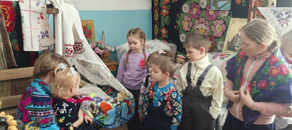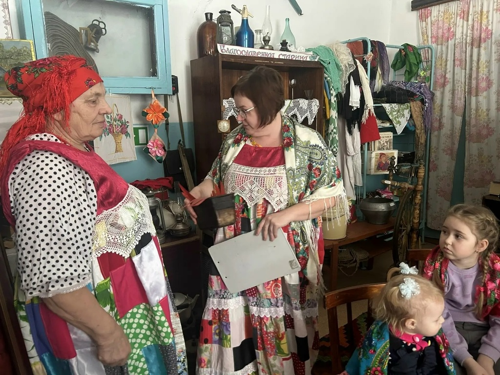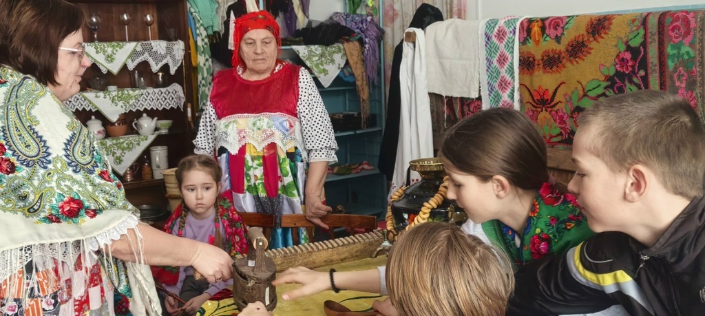 Местные юные исследователи из детского сада и начальной школы погрузились в атмосферу старинной русской избы, которая сделана в сельской библиотеке. Ребята совершили настоящее путешествие в прошлое: узнали, как жили наши бабушки и дедушки, какими предметами пользовались в быту и как обходились без современных удобств. Дети восторженно рассматривали традиционную домашнюю утварь: прялки, чугунки, ухваты, самовары и многое другое, знакомились с устройством сердца дома – величественной русской избой и узнали старинные способы ведения хозяйства, например, как стирали бельё без стиральных машин, готовили еду в печи и заваривали чай в самоваре.