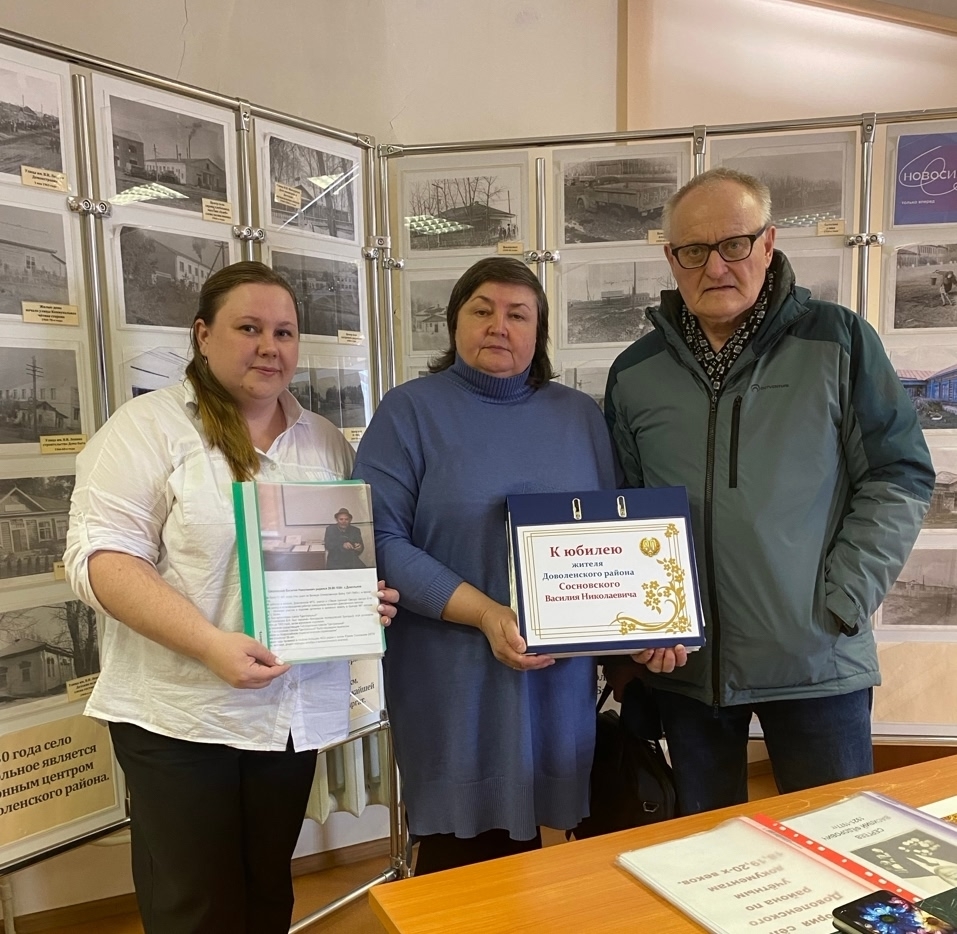 Также визитёр побывал в гостях в Доволенском историко-краеведческом музее. Он передал на постоянное хранение памятные и юбилейные медали, знаки своего отца, тоже нашего земляка Василия Сосновского – это было его волей. До этого они находились в музее на временном хранении. Напомним, что Василий Николаевич в послевоенное время поднимал сельское хозяйство и осваивая целинные земли. Отработал он на целине более 35 лет, в последние годы проживал в посёлке Кольцово Новосибирской области, рядом с сыном Юрием. Ушёл из жизни Василий Сосновский в 2023 году.